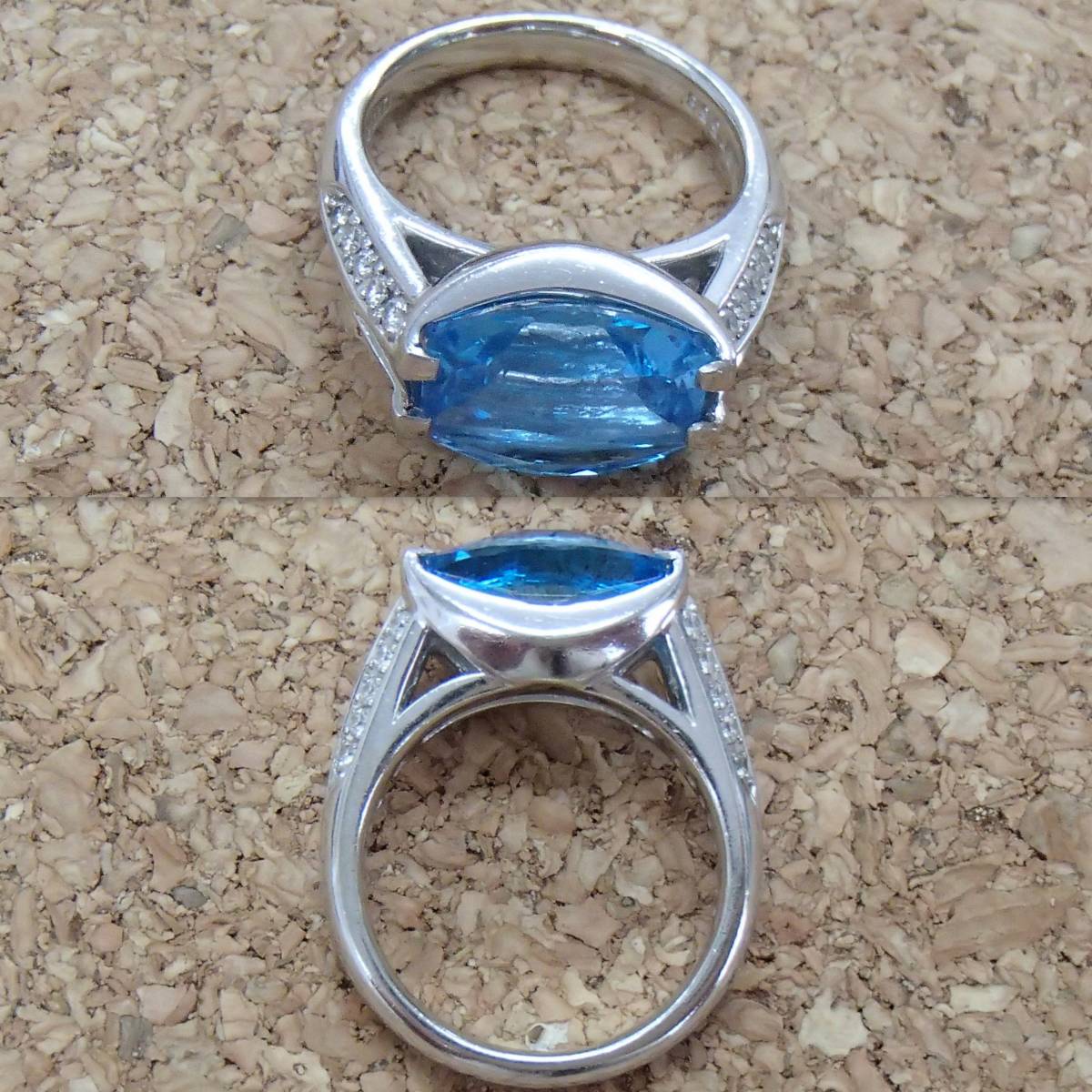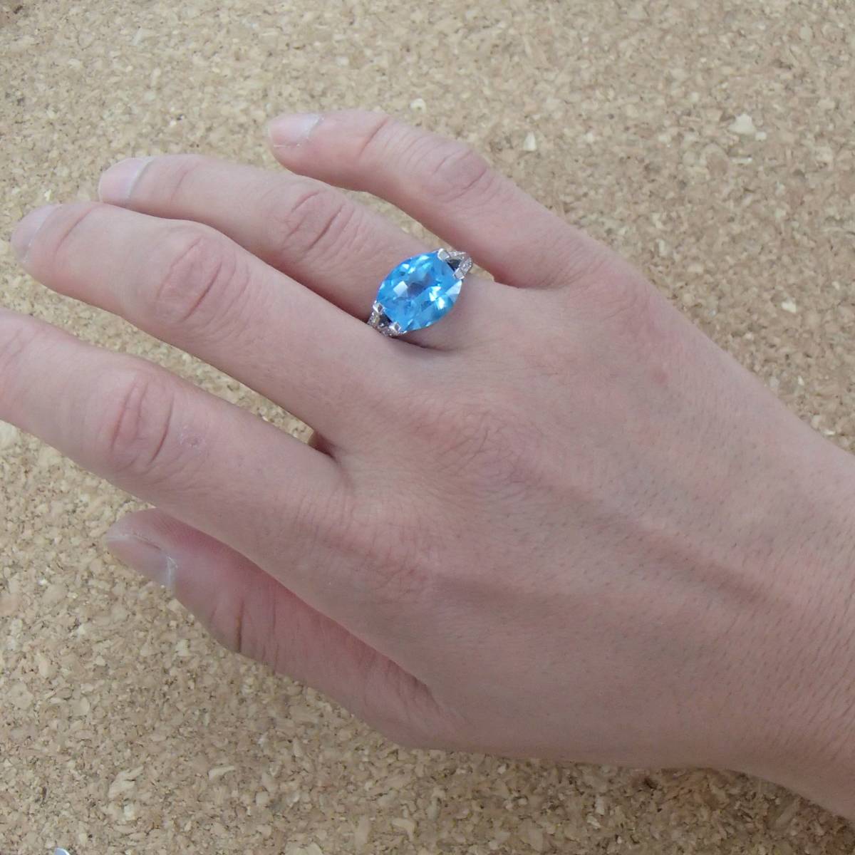 プラチナ900 ブルートパーズ・ダイヤモンドリングです。