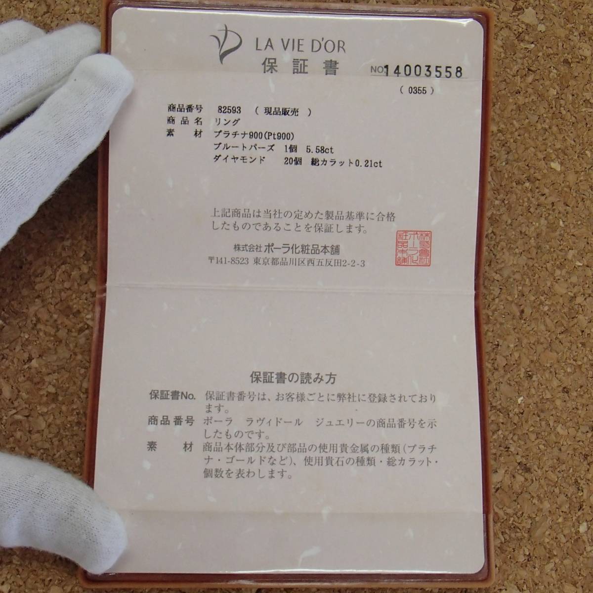 13号 Pt900 ブルートパーズ 5.58ct ダイヤ 0.21ct プラチナ POLA LA VIE D’OR 5ct ポーラ ラヴィドール リング 指輪