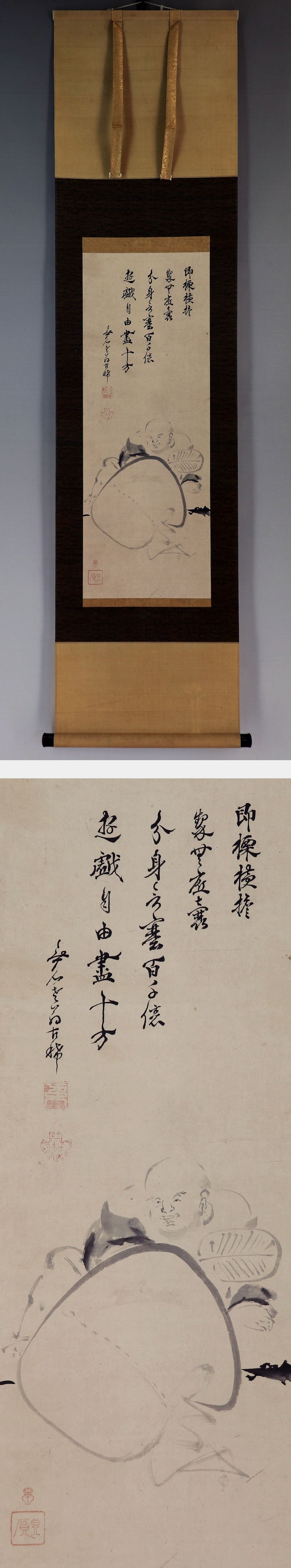 №2103078【真作】岡本半助【布袋画賛】◆紙本◆識箱◆掛軸 | |