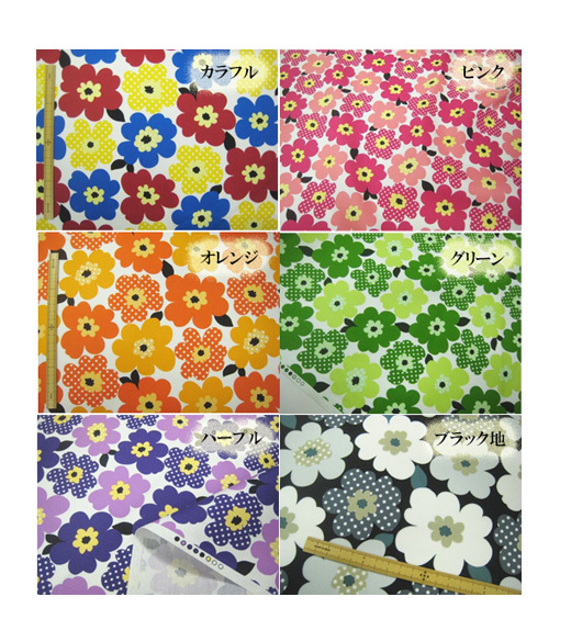 YOB 販売色カラフルのみ 長さ1.5m (37088) 北欧風 花柄 オックス 生地 レトロ フラワープリント