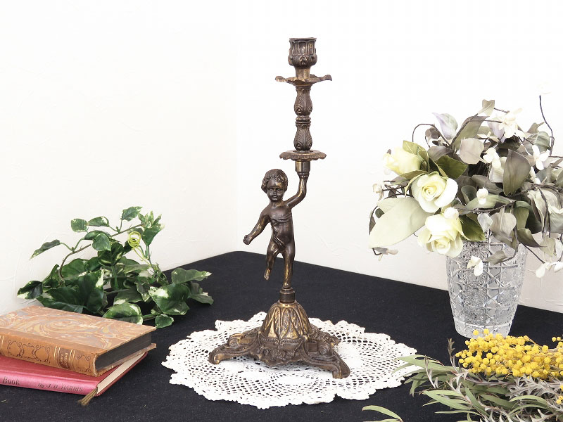 ベルギーで買い付けた真鍮のキャンドルスタンドです。子供が左手に1灯掲げているデザインの燭台です。カップボードやチェストなどの上に置き、お部屋のインテリアとしてもお楽しみください。