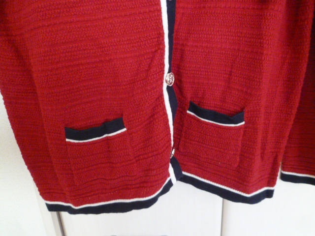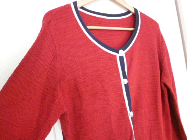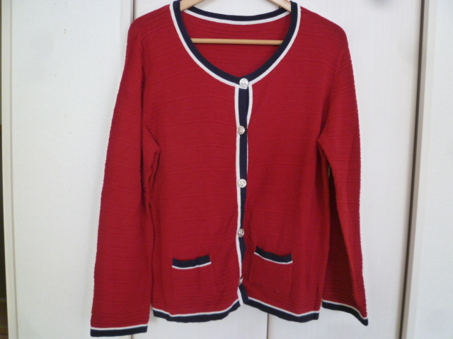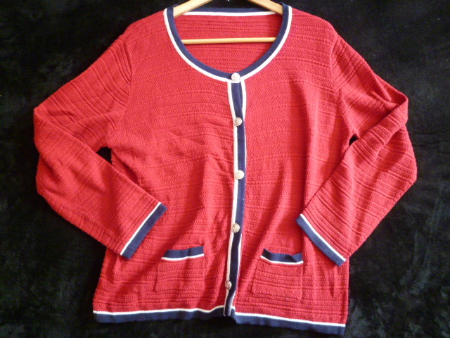 CLUDLA-BIT△赤×紺バイカラーニットカーディガン3L/レッドネイビー大きいサイズビックサイズ△T416