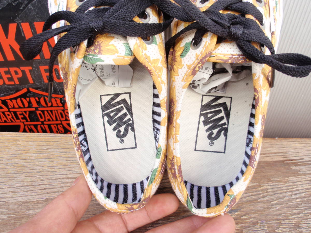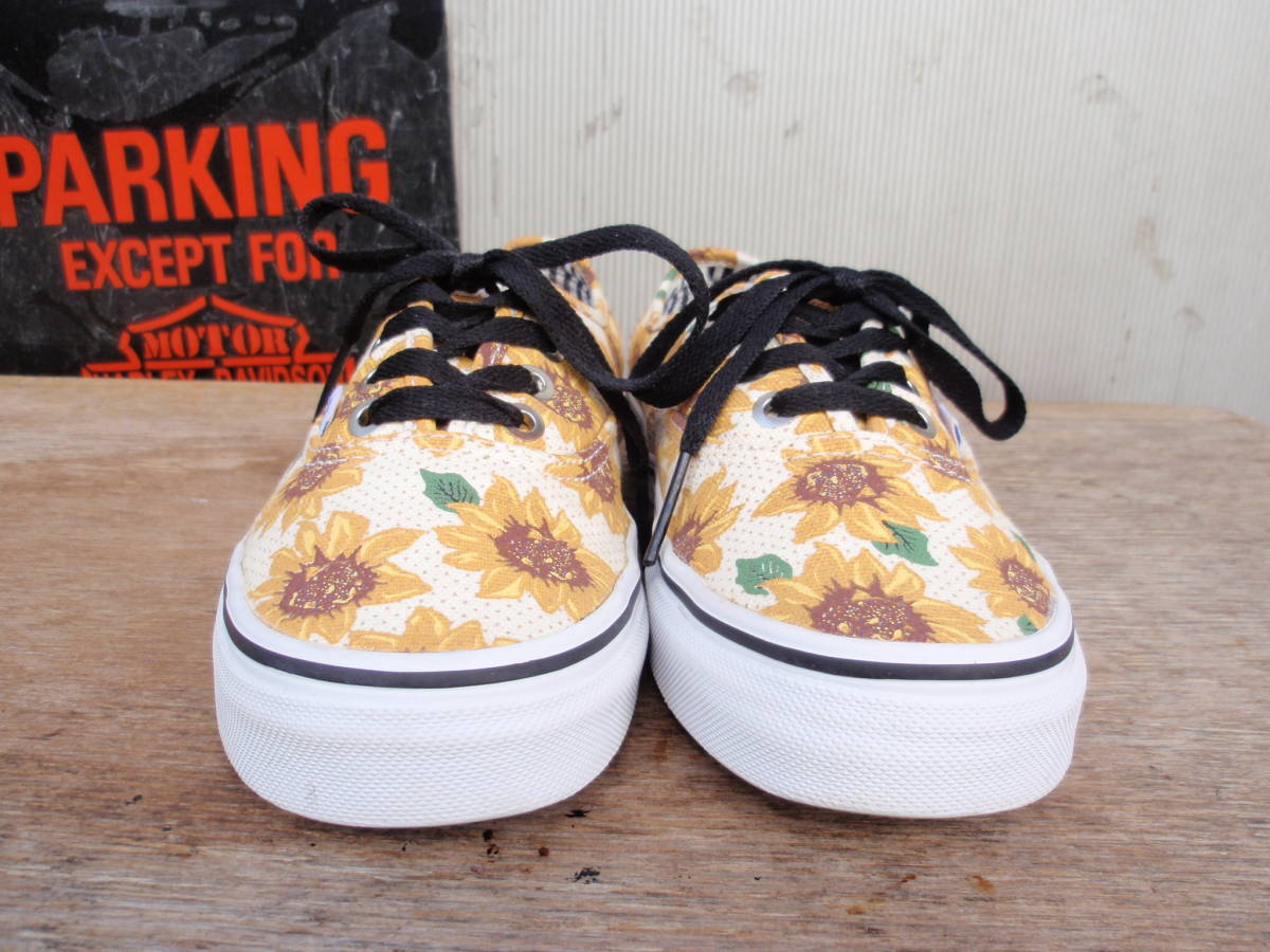 中古品ですが、数回しか使用しませんでしたので、目立った汚れや傷は無く状態は良いです。バンズのスニーカー「エラ」になります。向日葵プリンが全体的に施されています。サイズはUS5.5インチ、22センチ表記です。正規品。