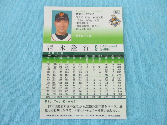 ★BBM 2008★1st Version〔027 清水隆行 読売ジャイアンツ〕トレカ♪