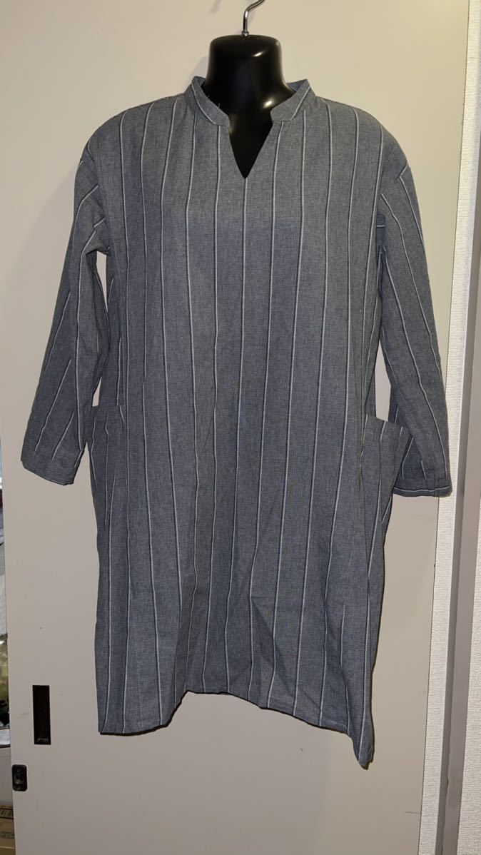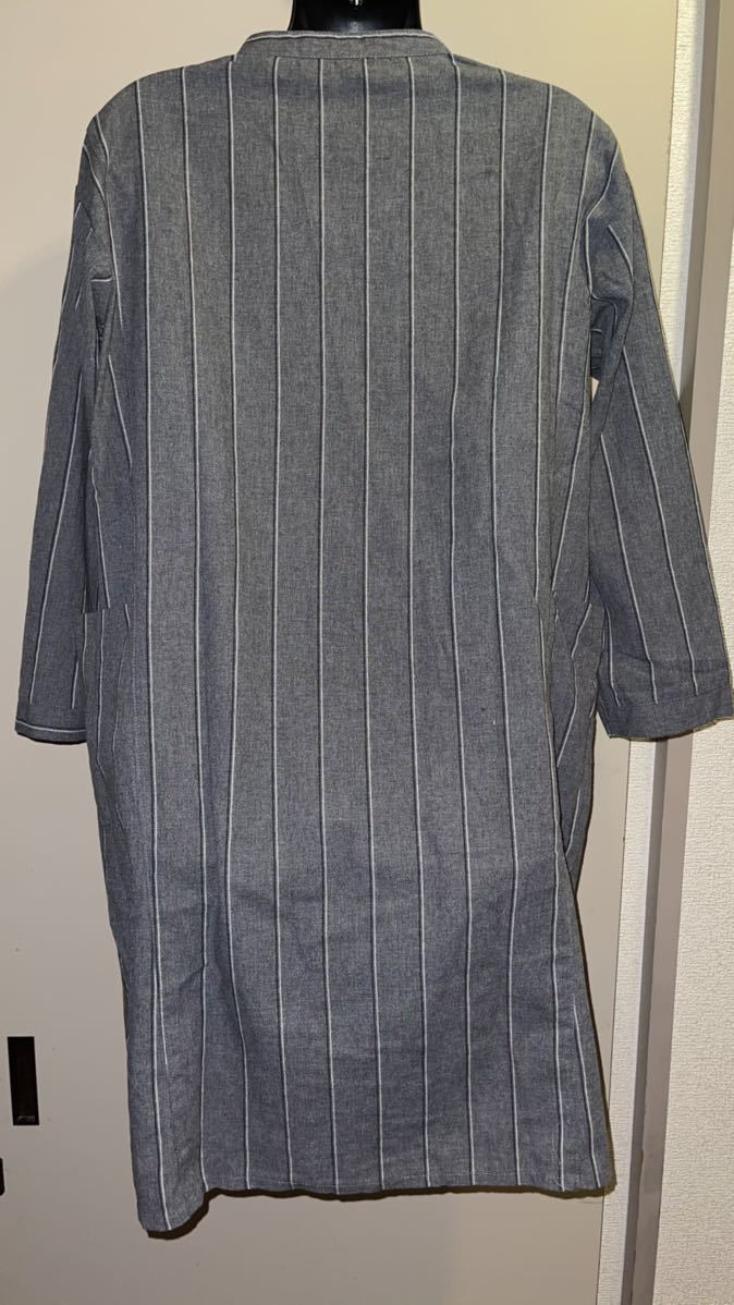 実寸は平置きの場合、着丈99cm、肩幅50.5cm、身幅52.5cm、袖丈46cmです