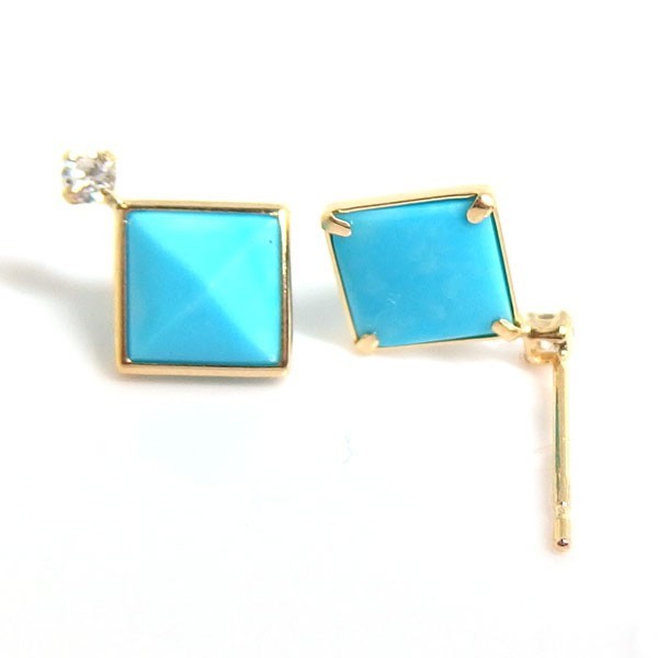 商  品  名スリーピングビューティ天然ターコイズ&ダイヤピラミッドピアス■2252