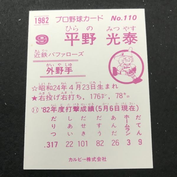1982年 カルビー プロ野球カード 82年 110番 近鉄 平野   【管理NO:3-37】