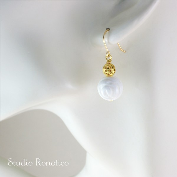 フックタイプのピアス部分14kgf製、ワイヤー部分は真鍮製ゴールドコートを使用しています。