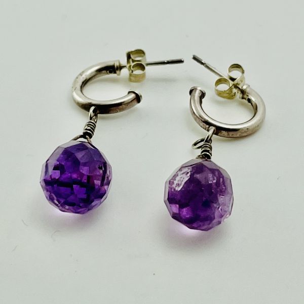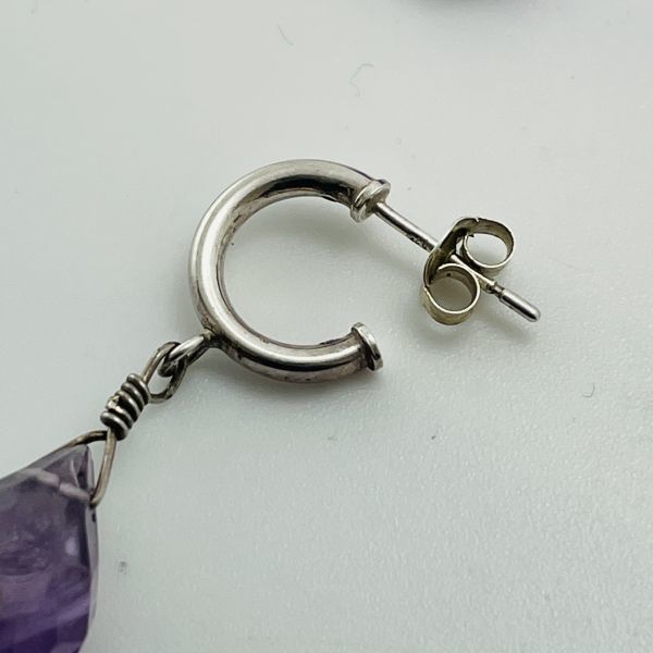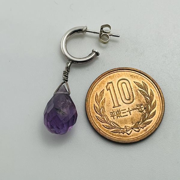 年代 :1980's以降 サイズ :全体 縦 4.8cm / 石 直径 1cm x 縦 1.7cm 素材 :Sterling Silver(銀925) / 天然石 アメジスト 重さ :約 5g 刻印 : 925 / STERLING アメリカで買い付けたビンテージ、銀製ピアスのご紹介になります。 シルプルでオシャレなモダンデザインになります。 銀職人によるハンドメイド作品になります。 1カ所カケのような傷がありますが石をカットした際にでた石の空洞の部分かと思います。 最後の画像で確認ください。 全ての商品は古い物のため細かいキズや使用感はありますので ビンテージ品として理解頂ける方のみ入札下さい。 他にも世界のアンティーク雑貨等、多数出品しておりますので宜しければ マイオークションからご覧ください ↓↓↓ ![]() サイズは出来る限り正確に測っておりますが、多少の誤差はご了承ください。 写真をしっかりとご確認の上、入札して下さい。 (神経質な方はご遠慮下さい) 質問などありましたらお気軽に問い合わせ下さい。 尚、細かい写真など詳細をご希望の方は拡大写真を送りますので、質問欄にご希望の旨とメールアドレスをお載せ下さい。 (ご質問内容は公開される事はございません。ご安心下さい) | |||