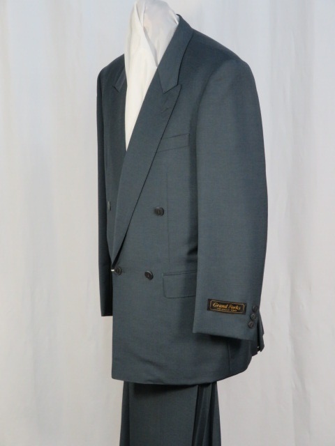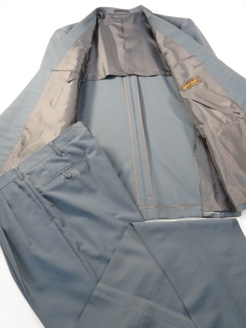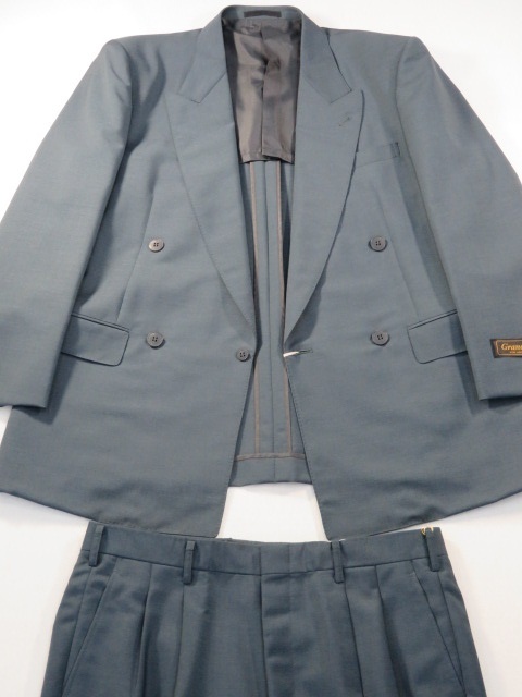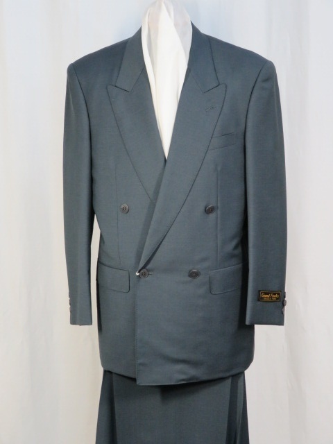 ★☆ A6-84 ダブル4B×1ピーク衿スーツ 新品 春夏 青鼠系 日本製 ☆★