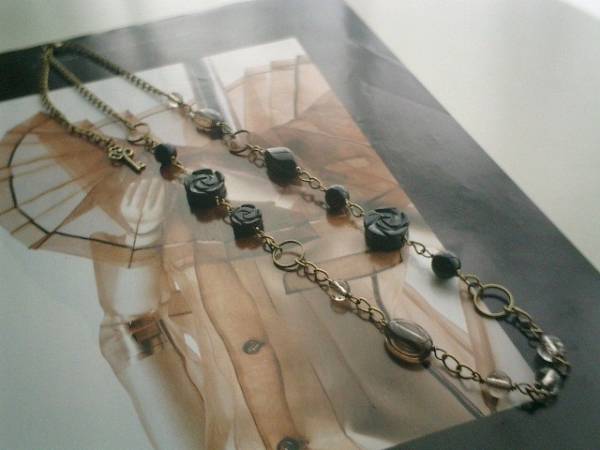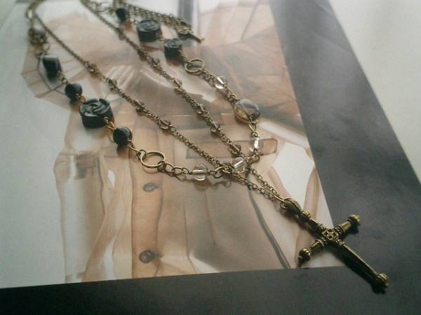 大人の黒に魅せられて・・シリーズです♪シックな黒系の石を集めたシリーズです♪可憐なオニキスとスモーキークォーツのネックレス2本セットです♪14ミリ、10ミリの大きさ違いの両面薔薇、8ミリの丸玉、13×18ミリのツイストナツメなどデザイン違いのオニキスに14×10ミリのオーバル、6ミリの丸玉のスモーキークォーツを合わせてひっそりロマンチックしています♪長さは全長72センチ位で調節自由です♪長い方のネックレスは4ミリの丸玉のスモーキークォーツに40×25ミリのメタルクロスのトップを合わせてアンティークな表情です♪長さは70センチ+アジャスター15センチで最長85センチ位です♪それぞれ単品でも出品しています♪お揃いのブレスレットも出品しています♪♪シンプルで飽きのこないいつまでも着けられるデザインを考えて作りました!ハンドメイドをご理解頂いてノークレーム、ノーリターンでお願いします