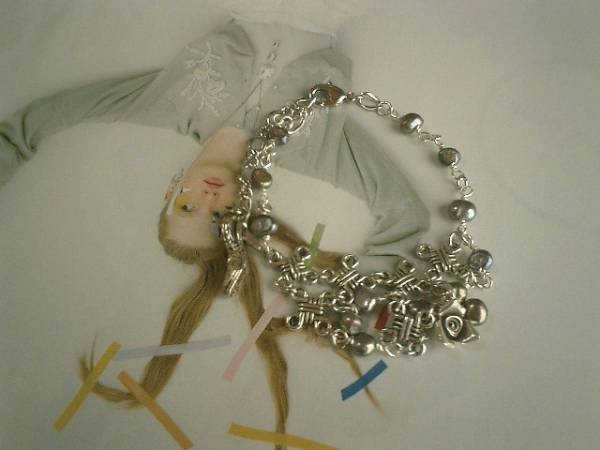 ロゼッタのおめかし・・シリーズです♪センチメンタルな薔薇・・シックなライトグレーの淡水パールのブレスレットです♪キュートなデザインチャームとカレンシルバーの薔薇を合わせて可憐な表情です♪淡水パールは6×4ミリ位のバロックです♪カレンシルバーの薔薇は10ミリ位です♪長さは全長23センチ位で調節自由です♪♪お揃いのネックレスも出品しています♪♪シンプルで長く着けていただけるデザインを考えて作りました♪ハンドメイドをご理解頂いてノークレーム、ノーリターンでお願いします