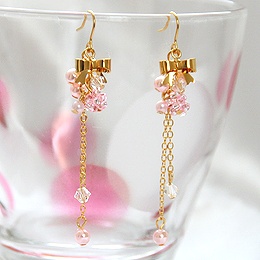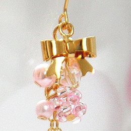 ■櫻■デザインピアス♪002:ゴールドリボンがカワイイ♪