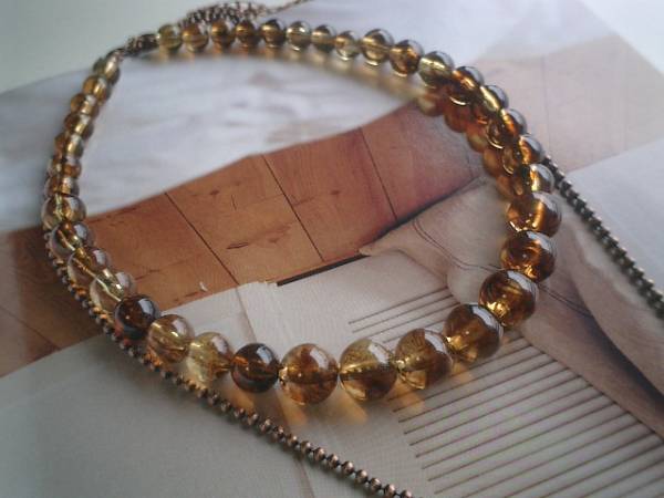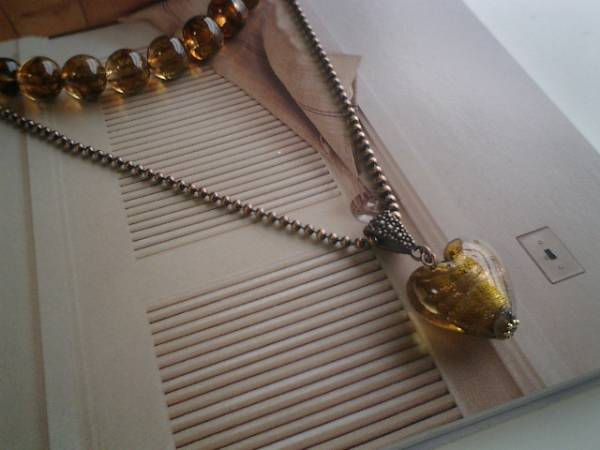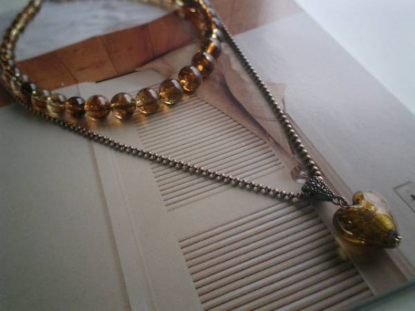 ロマンチックの定義・・シリーズです♪シックな琥珀色に恋して・・秋色でまとめたネックレス2点セットです♪琥珀色の樹脂ビーズは8ミリ、10ミリ、12ミリの丸玉です♪長さは39センチ+アジャスター11センチで最長50センチ位です♪チョーカー風に着けられても可愛いです♪華奢なボールチェーンのトップは20ミリ位のハートのベネチアビーズです♪長さは74センチ+アジャスター14センチで最長88センチ位です♪それぞれ単品で着けられても素敵です♪パリ(??)っぽいアンティークな雰囲気で作りました。お揃いのブレスレットやピアスも出品しています♪ハンドメイドをご理解頂いてノークレーム、ノーリターンでお願いします