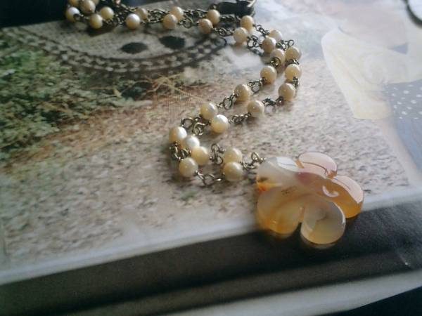 巴里祭をイメージして♪密やかに華やかに・・シックなベージュ色でまとめた大人の表情のネックレスです♪6ミリの丸玉のマザーオブパールと30ミリ位のモスアゲートのお花を合わせてシックにロマンチックしています♪長さは76センチ位で調節自由です♪♪お揃いのブレスレットやイヤリングも出品しています♪♪シンプルで飽きのこないいつまでも着けられるデザインを考えて作りました!ハンドメイドをご理解頂いてノークレーム、ノーリターンでお願いします