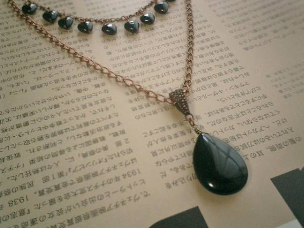 自分探しの旅・・シリーズです♪自由空間・シックなオニキスのネックレス2本セットです♪♪色々な組み合わせで楽しんでいただけます♪短い方のネックレスは8ミリのハートのオニキスをランダムに繋いでキュートな表情です♪長さは全長55センチ位で調節自由です♪チョーカー風にされても可愛いです♪漆黒のオニキスのフラットドロップは24×18ミリ位です♪クラシカルな座金でおめかしして大人のロマンチックしています♪長さは85センチ位で調節自由です♪♪それぞれ単品やお揃いのブレスレットも出品しています♪♪シンプルで飽きのこないいつまでも着けられるデザインを考えて作りました!ハンドメイドをご理解頂いてノークレーム、ノーリターンでお願いします