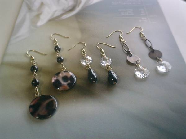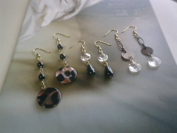 ミニシアターの余韻・・シリーズです♪赤い靴の少女・・シックなオニキスとスワロのピアス6本セットです♪ペアが3組で合わせて6本です♪色々な組み合わせで楽しんでいただけます♪♪大人仕様のデザインです♪オニキスは6ミリの丸玉や18×8ミリのドロップです♪♪豹柄の20ミリのフラットのシェルやスワロのクリスタルのヘキサゴンやデザインチェーンなどを合わせてキュートモダンな表情です♪長さは左から7.5センチ、真ん中が6センチ、右端が7センチ位です♪イヤリングにも変更出来ます♪お揃いのネックレスやブレスレットも出品しています♪♪シンプルで飽きのこないいつまでも着けられるデザインを考えて作りました!ハンドメイドをご理解頂いてノークレーム、ノーリターンでお願いします