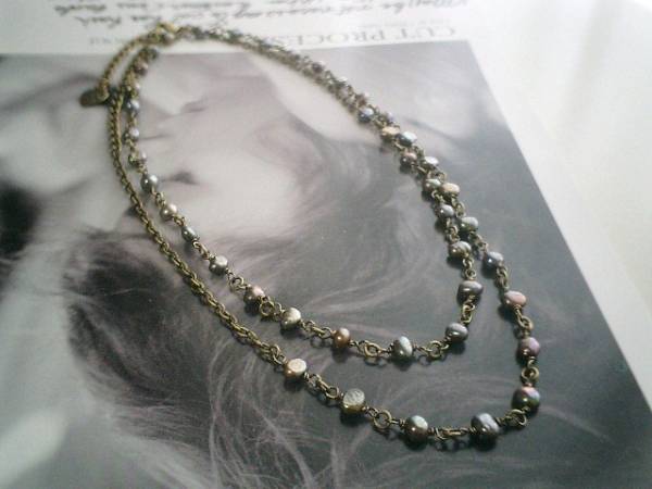 ガールズ・ファッションシリーズです♪ロマンチックグレー気分・・物憂げなグレーでまとめたネックレスです♪パープルグレーの淡水パールは6ミリ位のバロックです♪シンプルで合わせやすいデザインです♪長さは全長96センチ位で調節自由です♪2連にされたりブレスにされても可愛いです♪お揃いのネックレスやブレスレットも出品しています♪♪シンプルで長く着けていただけるデザインを考えて作りました♪ハンドメイドをご理解頂いてノークレーム、ノーリターンでお願いします