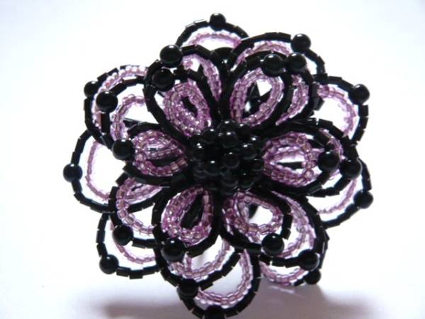 | ビーズで可愛いお花のモチーフを作りました。 | ||