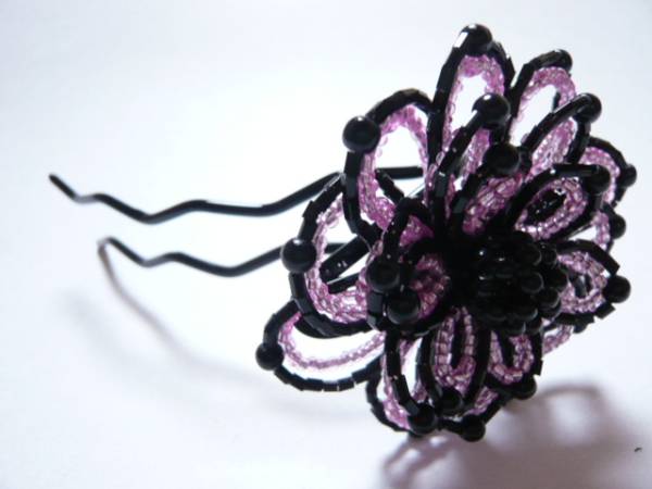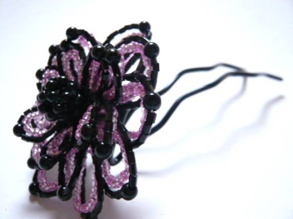 | 黒いビーズとのコンビネーションでとても落ち着いた仕上がりです。 | ||