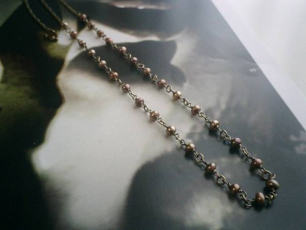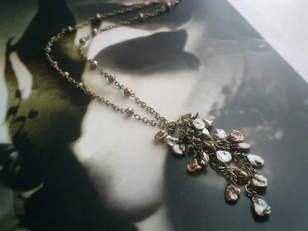 ミニシアターの余韻・・シリーズです♪ドラマチックに恋して・・繊細なブロンズゴールドの淡水パールと芥子パールのネックレス2本セットです♪大人仕様のデザインです♪淡水パールは5ミリ位のボタンです♪芥子パールは7ミリから9ミリ位までの大きさ違いです♪シックで深みのあるお色がアンティークな表情です♪真ん中の画像の淡水パールのネックレスは長さ68センチ位です♪チョーカー風にされてもブレスにされても素敵です♪右端のネックレスは72センチ+アジャスター11センチで最長83センチ位です♪芥子パールのトップは7センチ位です♪それぞれ単品やブレスレットやピアスも出品しています♪♪シンプルで飽きのこないいつまでも着けられるデザインを考えて作りました!ハンドメイドをご理解頂いてノークレーム、ノーリターンでお願いします