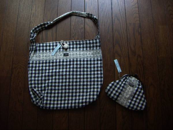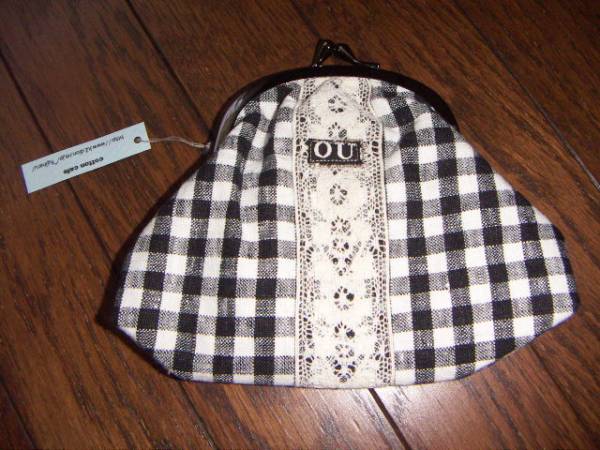 即決★新品♪ハンドメイド ギンガムチェック ナチュラル バッグ&がま口(財布) お揃い 2点セット