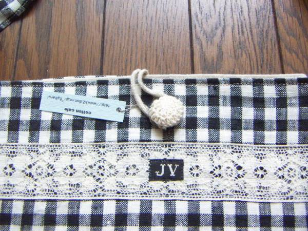 黒×白のチェックにレースやイニシャルテープが可愛いです。