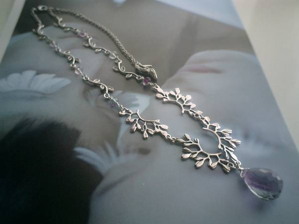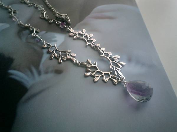 ガラスの靴の女の子・・シリーズです♪宝石箱を開けて・・繊細なフローライトのネックレスです♪トップのフローライトは20×15ミリのドロップカットです♪透明感のある神秘的なお色です♪フローライトのボタンカットやクラシカルなデザインチャームを合わせてアンティークモダンしています♪長さは45センチ+アジャスター15センチで最長60センチ位です♪お揃いのブレスレットも出品しています♪シンプルで飽きのこないいつまでも着けられるデザインを考えて作りました!ハンドメイドをご理解頂いてノークレーム、ノーリターンでお願いします
