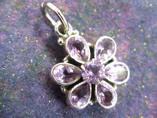天然のアメジストを使ったフラワーモチーフのペンダントトップ。