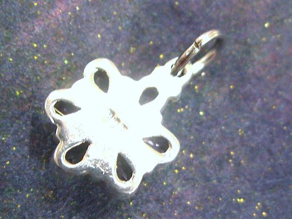 トップのサイズは1.7x1.7x厚さ0.7cm。丸カン部分を含めると2.6cm。