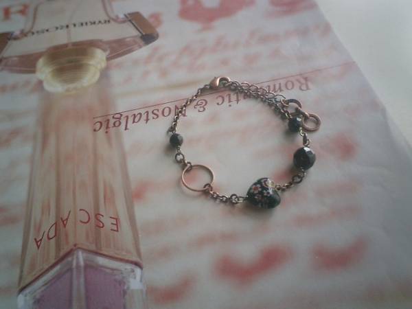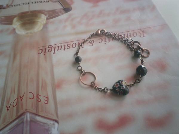 女の子テイスト・・シリーズです♪シックな黒の小花柄・・オニキスと小花柄のベネチアビーズのブレスレットです♪6ミリ、8ミリのランダムカットのオニキスに10ミリのハートの小花柄のベネチアビーズを合わせて可憐な表情です♪長さは16センチ+アジャスター6センチで最長22センチ位です♪お揃いのネックレスやイヤリングも出品しています♪シンプルで飽きのこないいつまでも着けられるデザインを考えて作りました!ハンドメイドをご理解頂いてノークレーム、ノーリターンでお願いします