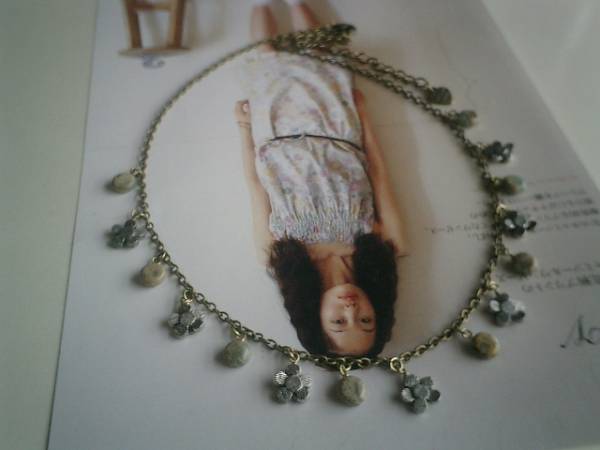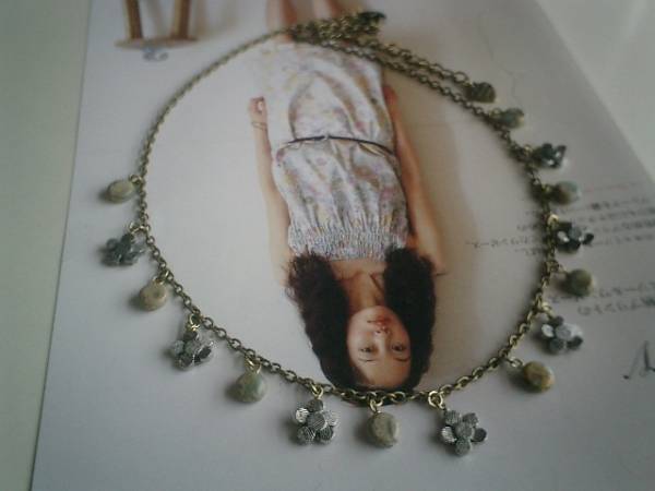 ナチュラル気分・・シリーズです♪野の花のように・・可憐なグリーンジャスパーと小さなお花のネックレスです♪モスグリーンのジャスパーは7ミリのコインです♪10ミリ位のシルバーグレーの小花のメタルチャームを合わせてひっそりロマンチックな表情です♪長さは51センチ+アジャスター11センチで最長62センチ位です♪お揃いのブレスレットも出品しています♪♪シンプルで飽きのこないいつまでも着けられるデザインを考えて作りました!ハンドメイドをご理解頂いてノークレーム、ノーリターンでお願いします