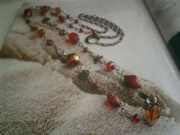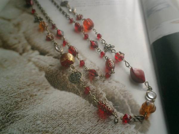 シック・フレンチの定義・・シリーズです♪オリエンタルな赤・・深い赤のネックレス2点セットです♪ベネチアビーズやシャネルビーズやモダンビーズなど個性的な素材を集めて神秘的な表情です♪6ミリから18ミリ位までの丸玉やオーバルカットやナツメ型、Sラインなど大きさ違い、デザイン違いです♪長さは長い方のネックレスが全長107センチ位で調節自由です♪長いので2連にされても素敵です♪短い方のネックレスは全長60センチ位で調節自由です♪チョーカー風にされてもブレスにされても可愛いです♪それぞれ単品やブレスレットやイヤリングも出品しています♪♪シンプルで飽きのこないいつまでも着けられるデザインを考えて作りました!ハンドメイドをご理解頂いてノークレーム、ノーリターンでお願いします