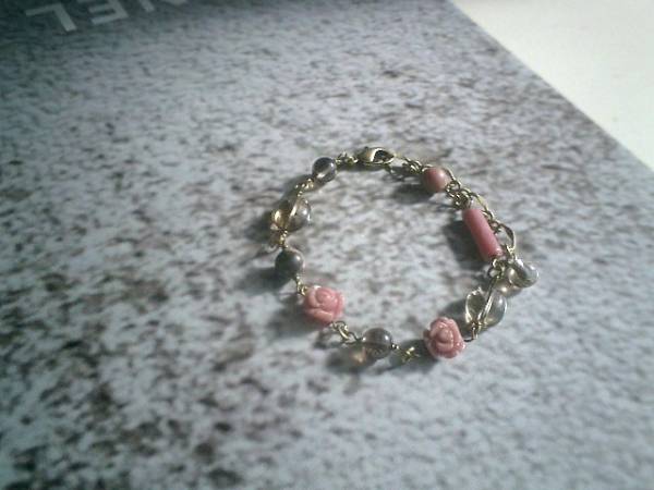 シック・フレンチの定義・・シリーズです♪花の髪飾り・・繊細なスモーキークォーツとロードナイトのブレスレットです♪スモーキークォーツは6ミリの丸玉、10×8ミリのオーバルです♪ロードナイトは6ミリの丸玉や13ミリのチューブです♪ロードナイトの薔薇を合わせて可憐な表情です♪長さは全長23センチ位で調節自由です♪♪お揃いのネックレスやブレスレットも出品しています♪シンプルで飽きのこないいつまでも着けられるデザインを考えて作りました!ハンドメイドをご理解頂いてノークレーム、ノーリターンでお願いします