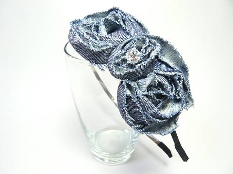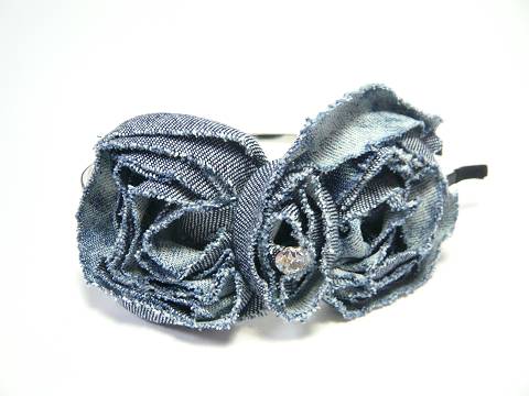 流行のデニムの大きなお花のカチューシャです。 | ||