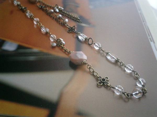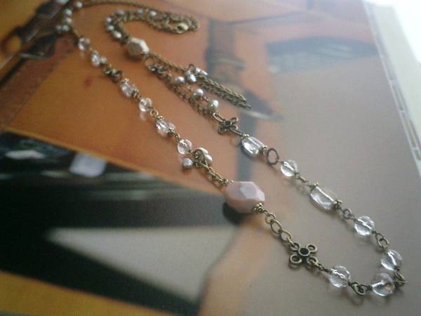 センチメンタル・ガール・・シリーズです♪私的ワードロープ・繊細な水晶と淡水パールのロマンチックなネックレスです♪水晶は6ミリのラウンドカット、11×8ミリのレグタングルです♪4ミリから7ミリ位の大きさ違いのバロックの淡水パールやピンクボツワナアゲートのラフカットやお花のチャームを合わせてさりげなく女の子チックしています♪長さは全長96センチ位で調節自由です♪2連にされても素敵です♪お揃いのブレスレットも出品しています♪シンプルでいつまでも着けられるデザインを考えて作りました!ハンドメイドをご理解頂いてノークレーム、ノーリターンでお願いします