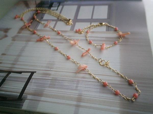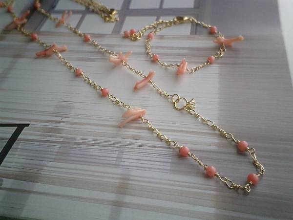 個人的創作ノート・・シリーズです♪秋色ピンクのネックレス・・シックなピンク珊瑚のネックレスとブレスレットの2点セットです♪合わせて着けていただきたいのでセットにしました♪ピンク珊瑚は4ミリの丸玉とさざれです♪シックなサーモンピンクの珊瑚にジルコニアのリングを合わせて大人のロマンチックしています♪ネックレスは全長82センチ位で調節自由です♪ブレスレットは全長22センチ位で調節自由です♪同じシリーズも出品しています♪♪シンプルで飽きのこないいつまでも着けられるデザインを考えて作りました!ハンドメイドをご理解頂いてノークレーム、ノーリターンでお願いします