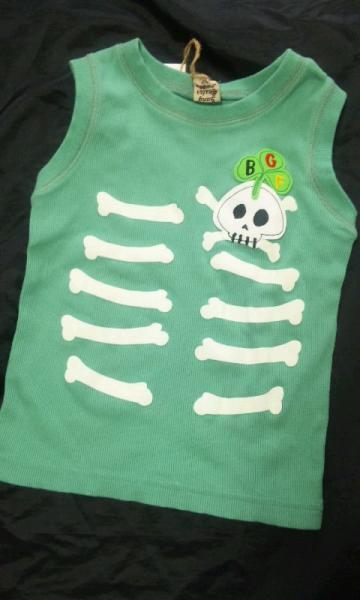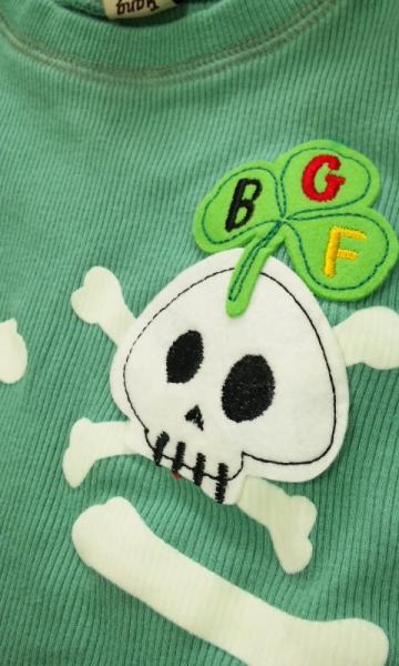 ★ドクロ骨クローバーのアップリケが格好いい♪リブ素材に綺麗なグリーンがオシャレなタンクトップ