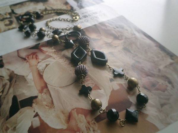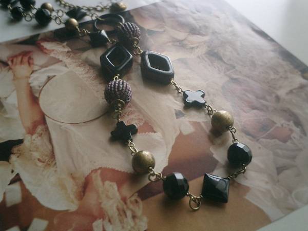 ニューヨーク・デッサンシリーズです♪オニキスに恋して・・シックなオニキスのネックレスです♪8ミリ、10ミリのラウンドカットやスクエア、12ミリのクロス、20ミリ位のリング、25ミリ位のスクエアカットなどデザイン違いのオニキスにダークパープルのビーズ玉やデザイン樹脂を合わせてアンティークモダンな表情です♪長さは全長83センチ位で調節自由です♪2連にされても素敵です♪お揃いのブレスレットも出品しています♪♪シンプルで飽きのこないいつまでも着けられるデザインを考えて作りました!ハンドメイドをご理解頂いてノークレーム、ノーリターンでお願いします