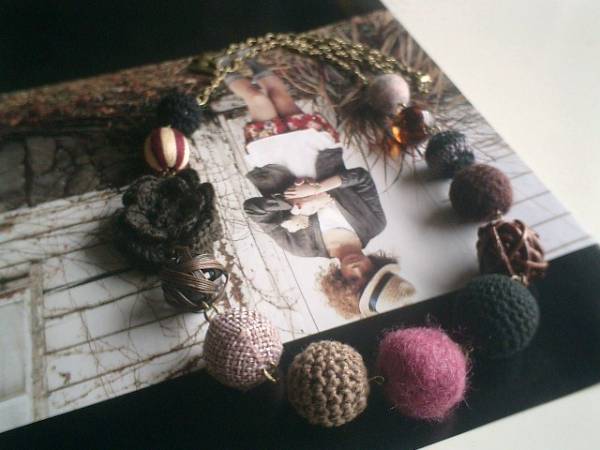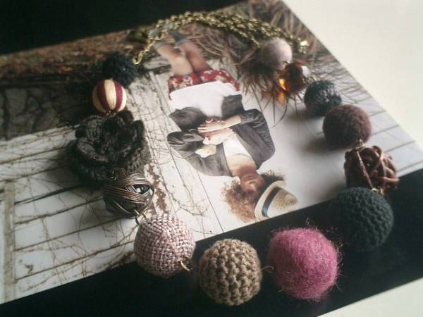 ロマンチック正統派・・シリーズです♪リトル・ガール・・キュートな異素材のネックレスです♪12ミリから38センチ位までの編みボールやフェルト玉や編みフラワーやワイヤーボールやラタン玉やウッドの編みボールや樹脂玉などシックな色を集めて秋のロマンチックしています♪長さは全長77センチ位で調節自由です♪チョーカー風にされても素敵です♪お揃いのブレスレットも出品しています♪♪シンプルで長く着けていただけるデザインを考えて作りました♪ハンドメイドをご理解頂いてノークレーム、ノーリターンでお願いします
