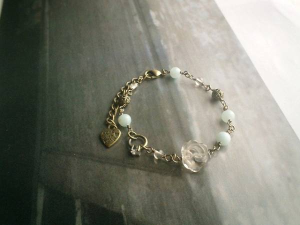 秋の美術館・・シリーズです♪ジュリエットの薔薇・・儚げなスモーキークォーツの薔薇が大人のロマンチックしています♪淡いお色のアマゾナイトの6ミリの丸玉とスモーキークォーツの4ミリの丸玉にジルコニアリングや透かしメタルビーズを合わせました♪トップの薔薇は14ミリ位です♪♪長さは全長23センチ位で調節自由です♪♪お揃いのネックレスも出品しています♪シンプルで飽きのこないいつまでも着けられるデザインを考えて作りました♪ハンドメイドをご理解頂いてノークレーム、ノーリターンでお願いします