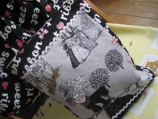 ![]() 商品説明★素敵な絵柄で可愛いサイズのトートバックを作成しました ★薄手の接着芯を絵柄の部分に英字柄は厚手の生地です ★内側はカラーの英字柄の生地を使用→生地を接いでおりますのでご了承願います ★バック後ろ側にはポケットをお付けしております ★山道ブレード金 銀2色を使用 ★とっても素敵な絵柄で作成しておりますので 使用範囲は広いかと思います ★プレゼントにされても良いかと思います ★色んな用途に使用可能です ★3枚目の画像は同時に出品中のサイズ違い、絵柄違いになります ★サイズ約25X30cm マチ約4、5cm★ ★紐の長さ約29cm |