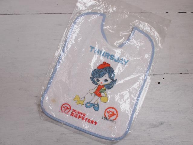 レトロ*クラウンダイヤG森永ドライミルク オマケ?女の子柄スタイ・THURSDAY・木曜日☆ノベルティー☆