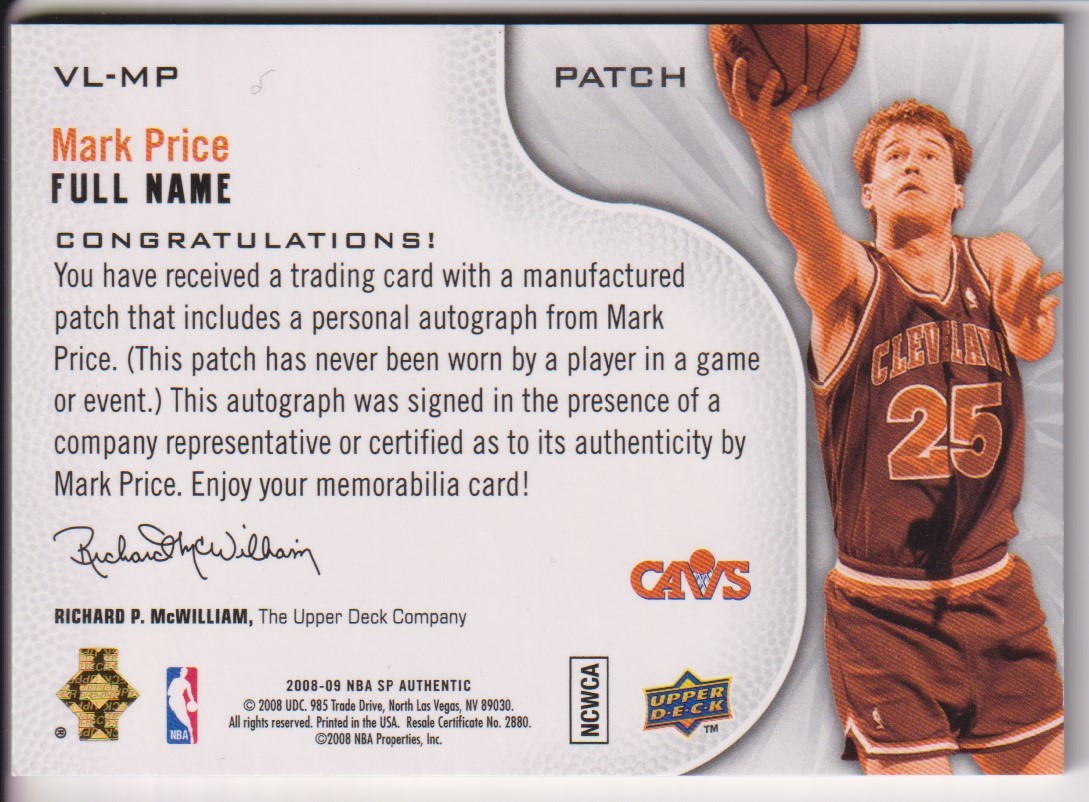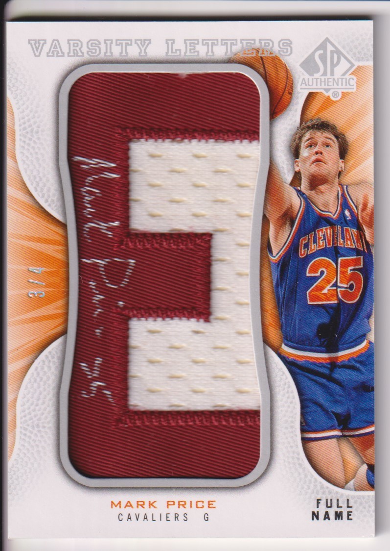 NBA MARK PRICE AUTO FULL NAME VARSITY LETTERS PATCH 2008-09 UPPER DECK SP AUTHENTIC /4 枚限定 マーク・プライス 直筆 サイン オート