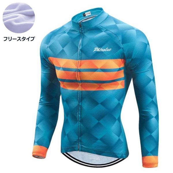 新品 長袖 裏起毛 サイクルジャージ No32 Sサイズ ブルー フルジップ ウェア メンズ サイクリング フリース ロードバイク MTB