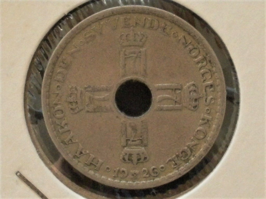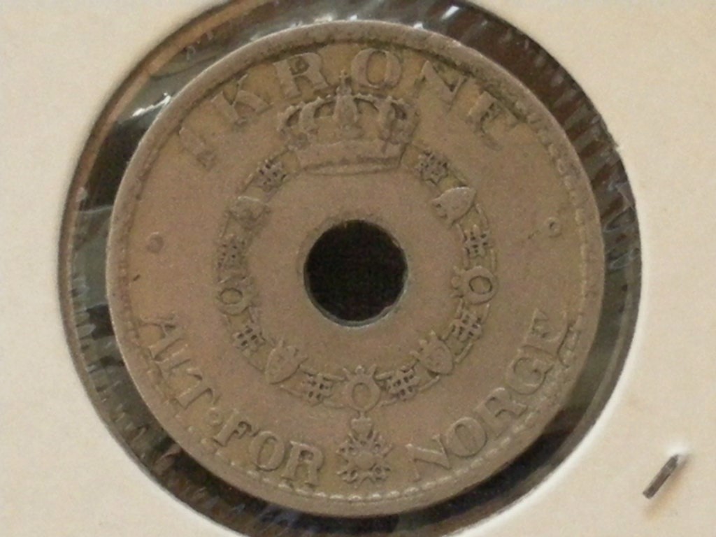 ノルウェー《穴開き銭》◆1KRONE◆銅・ニッケル貨◆1926年