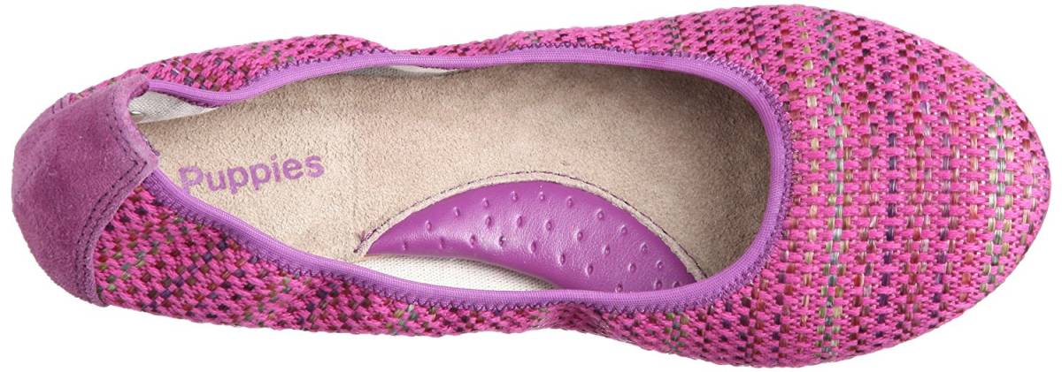 ツイード生地のようなカラフルなデザインが魅力的な、Hush Puppies(ハッシュパピー)のフラットシューズ。