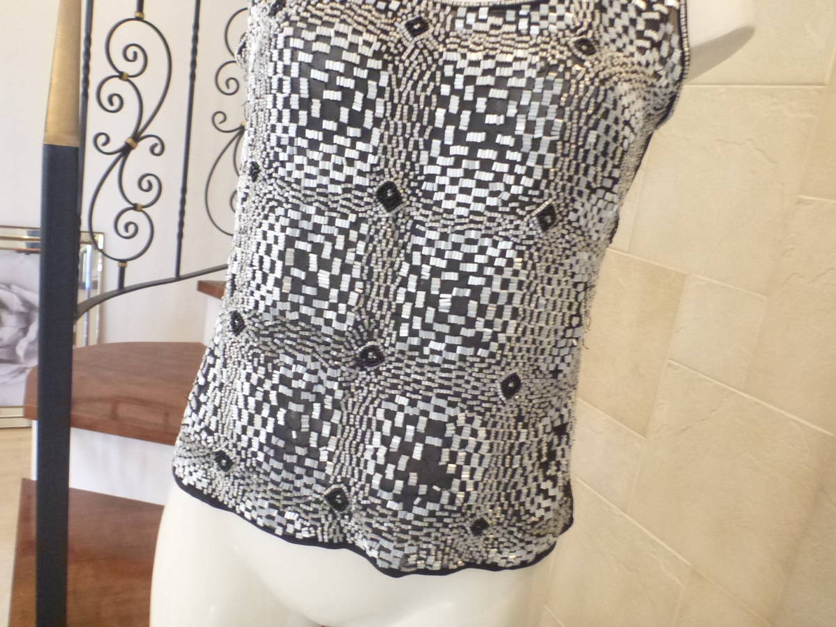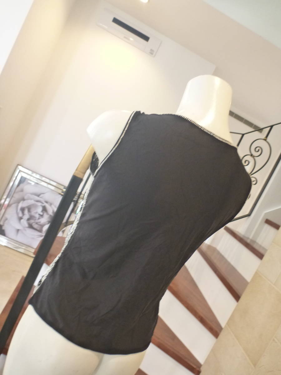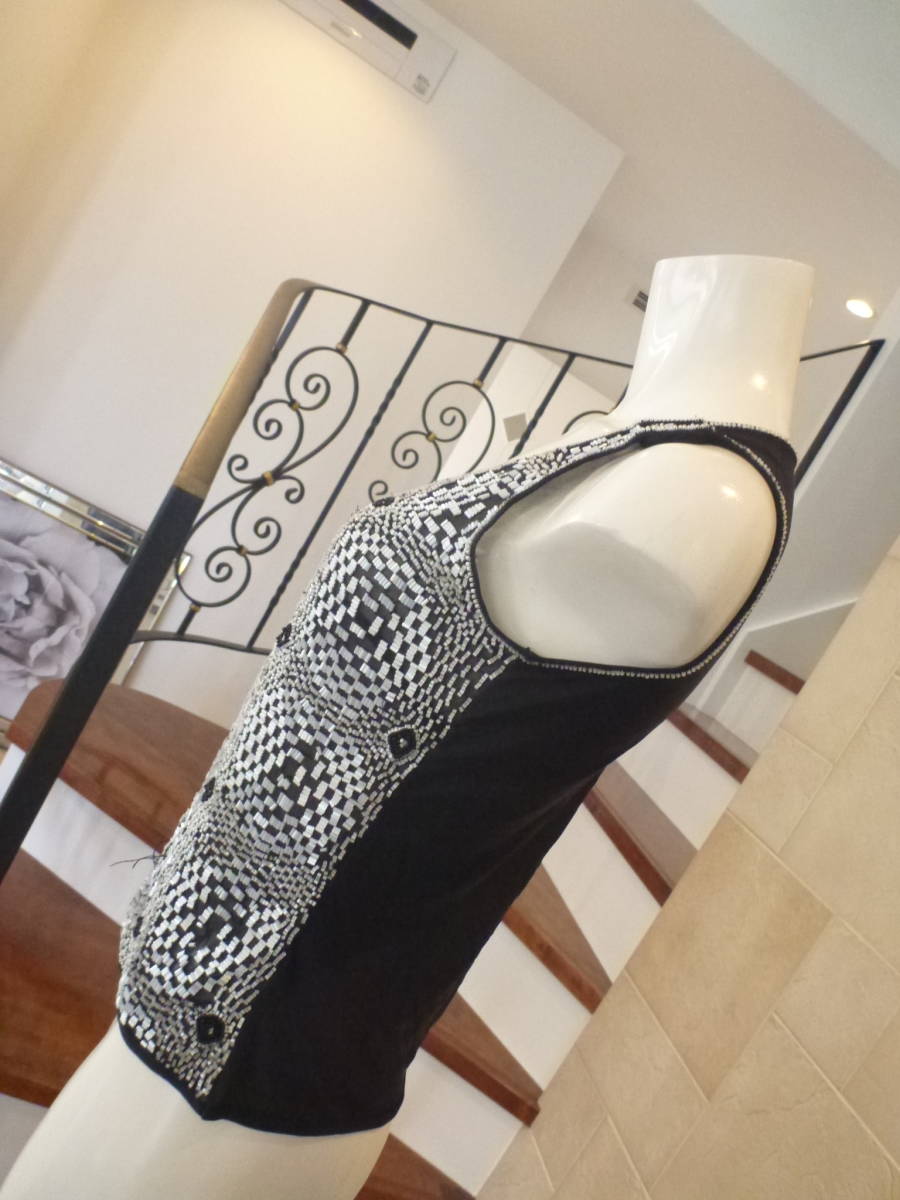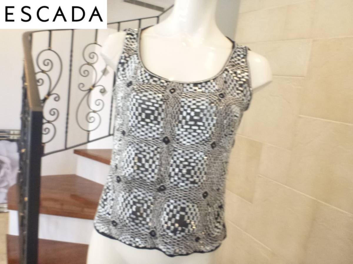 エスカーダ(ESCADA)★ 黒×白ビジュー ノースリーブニット S M相当