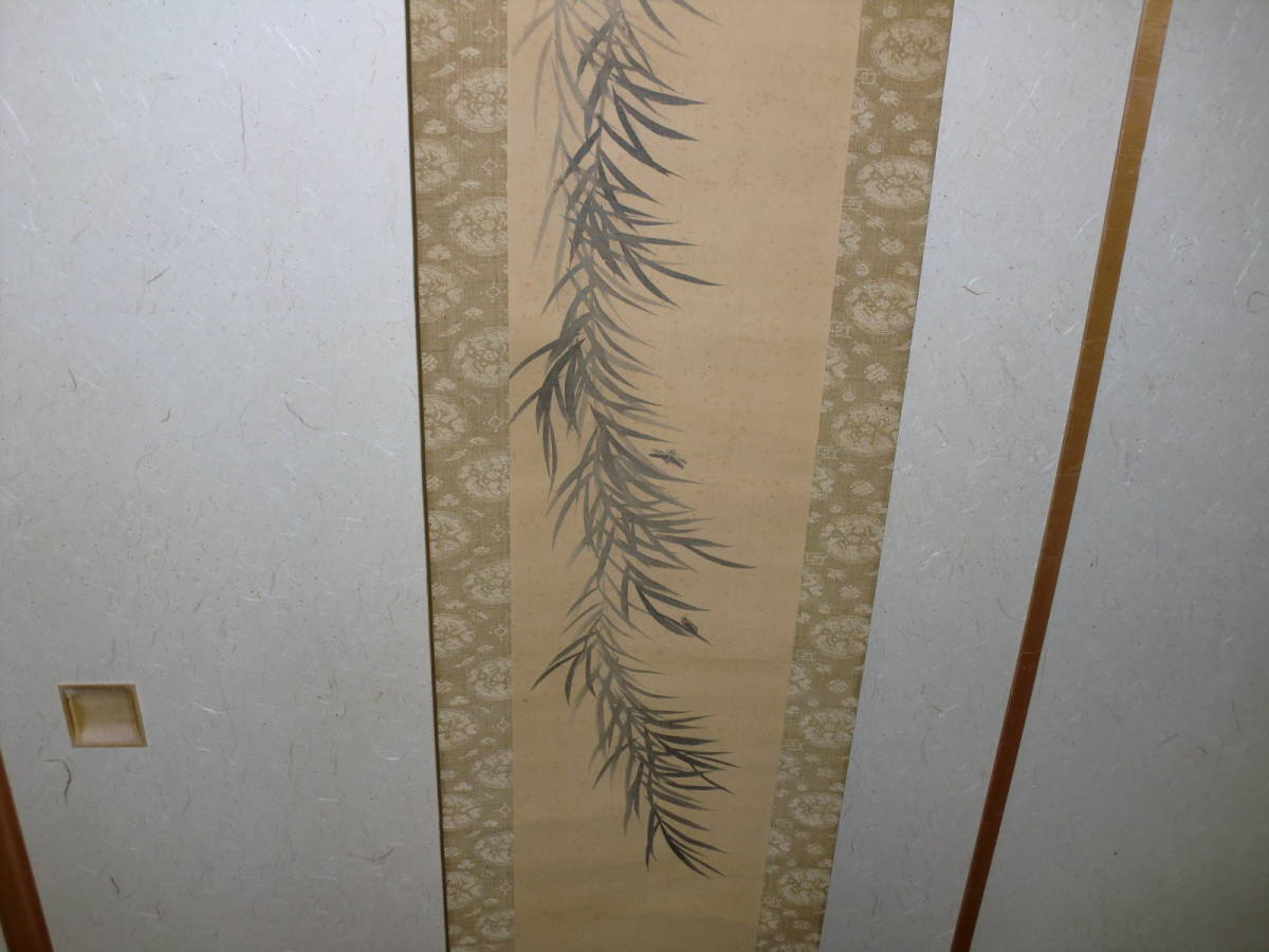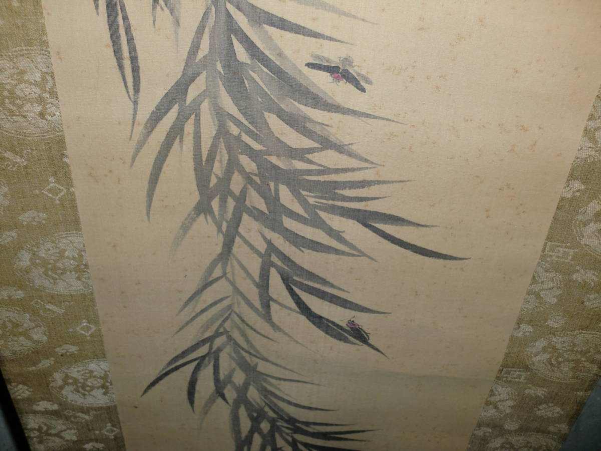 【模写】 掛軸 四条派 長谷川玉峰 トテモ繊細で渋ーい柳に夫婦ホタル之圖 時代木箱 蛍