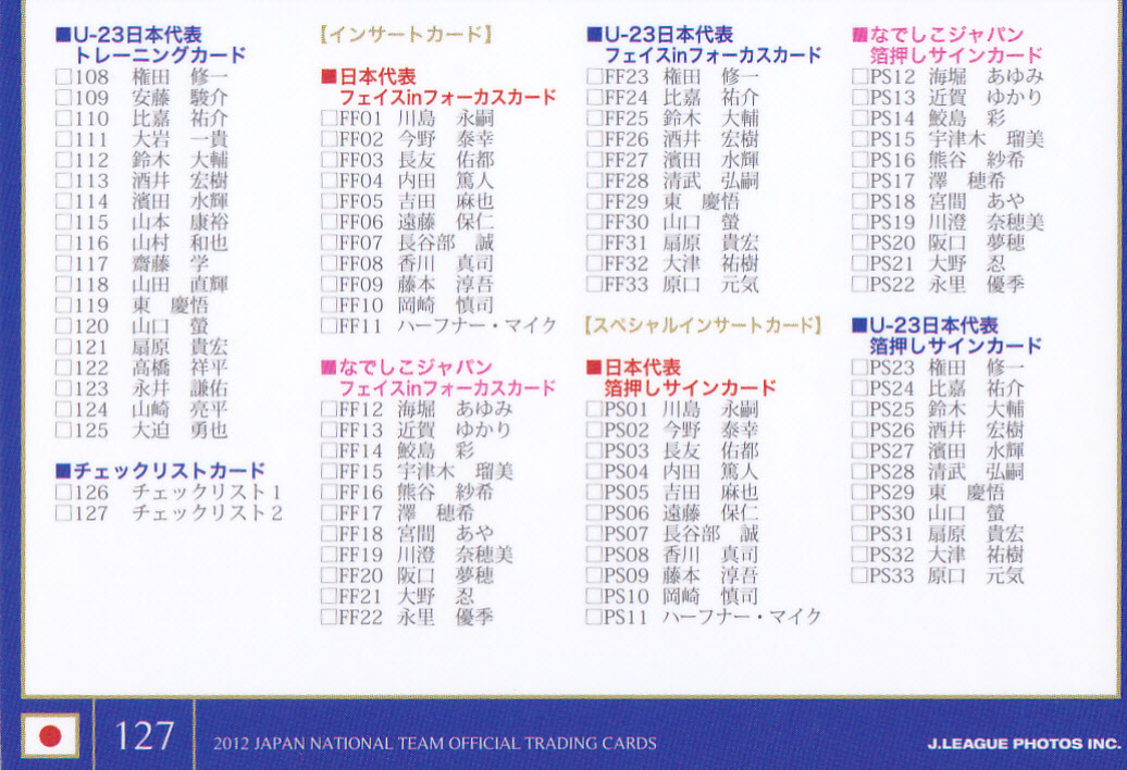 サッカー日本代表2012 127 チェックリスト2 企画・制作:Jリーグフォト㈱ 販売元:BBM